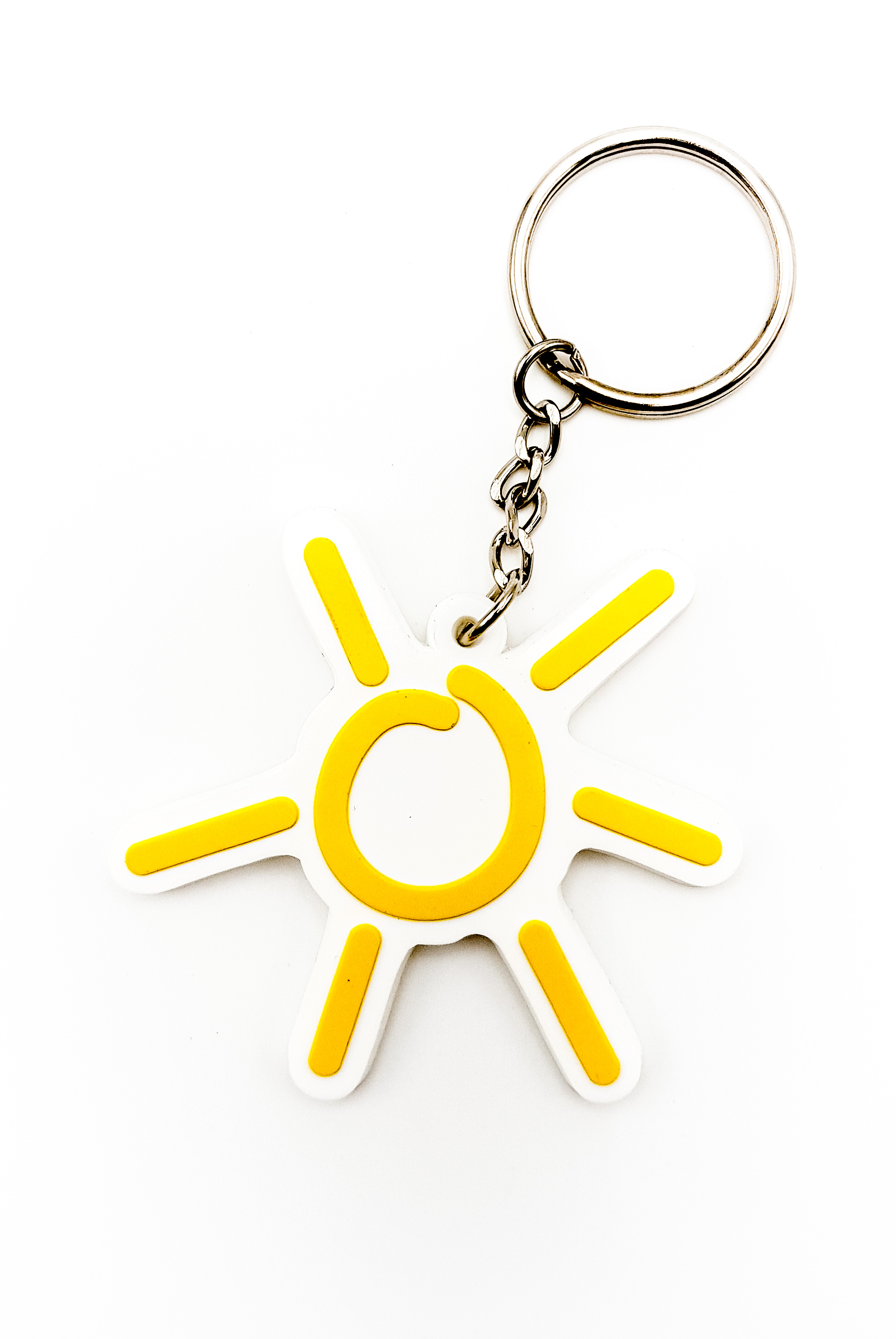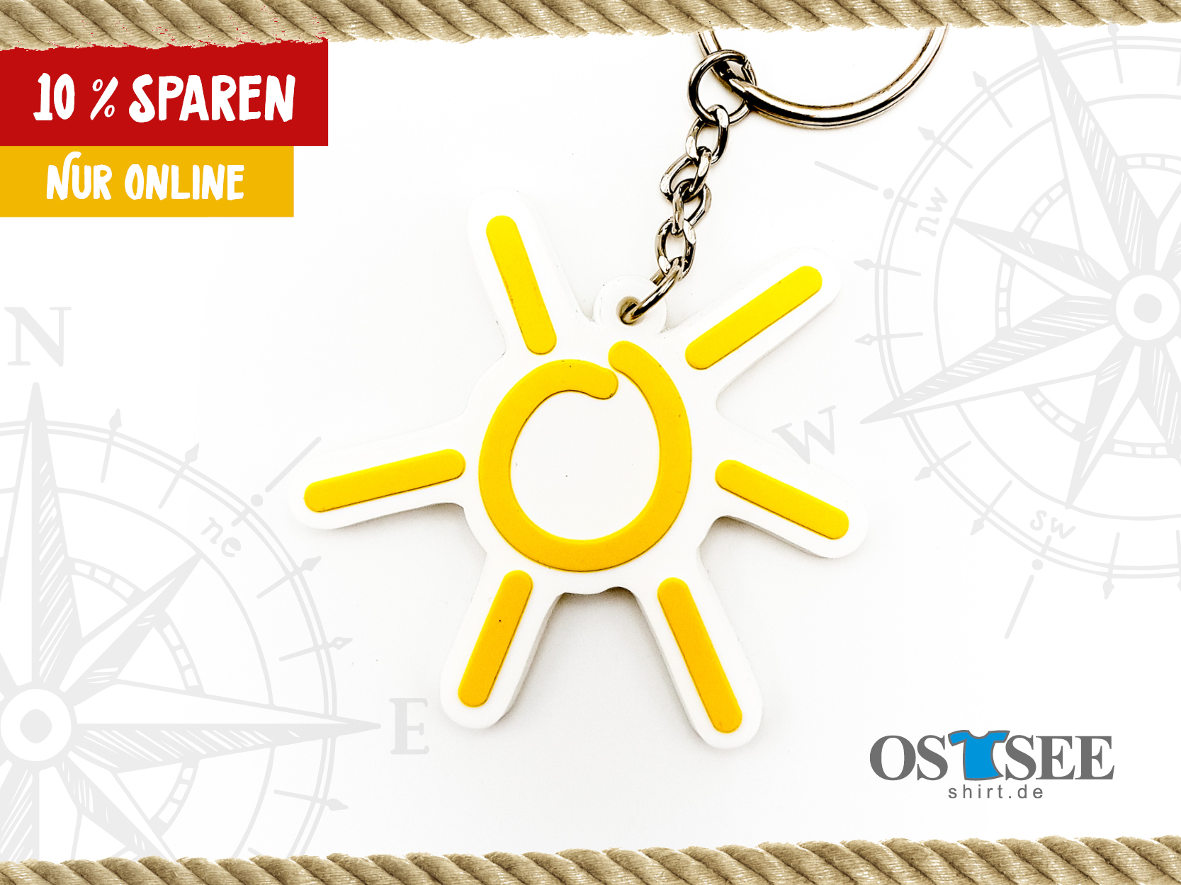 Unsere Sonne macht als Weichgummi-Anhänger eine noch bessere Figur und in der Farbe Sonnengelb strahlt sie auch noch um die Wette.