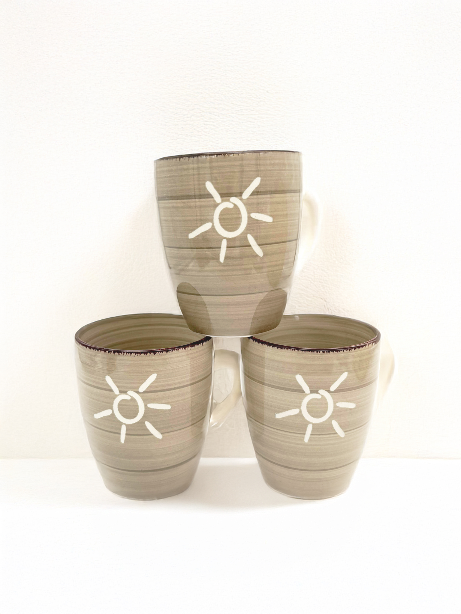 Alltags-Geschirr muss nicht langweilig sein - unser maritimes Tassen-Set tritt den Beweis an: Gut gelaunte Eleganz in natürlichen Farbtönen kombiniert mit verwirbelten Strudel-Mustern - Je nach verfügbarkeit variiert die Farbe der Becher.
